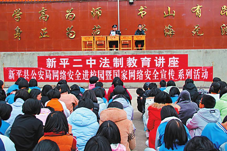 为建立和谐、平安的校园网络环境,加强青少年学生安全上网、文明上网、健康上网的自觉意识,近日,新平县公安局网安大队与桂山派出所联合到新平二中开展网络安全进校园活动。